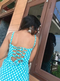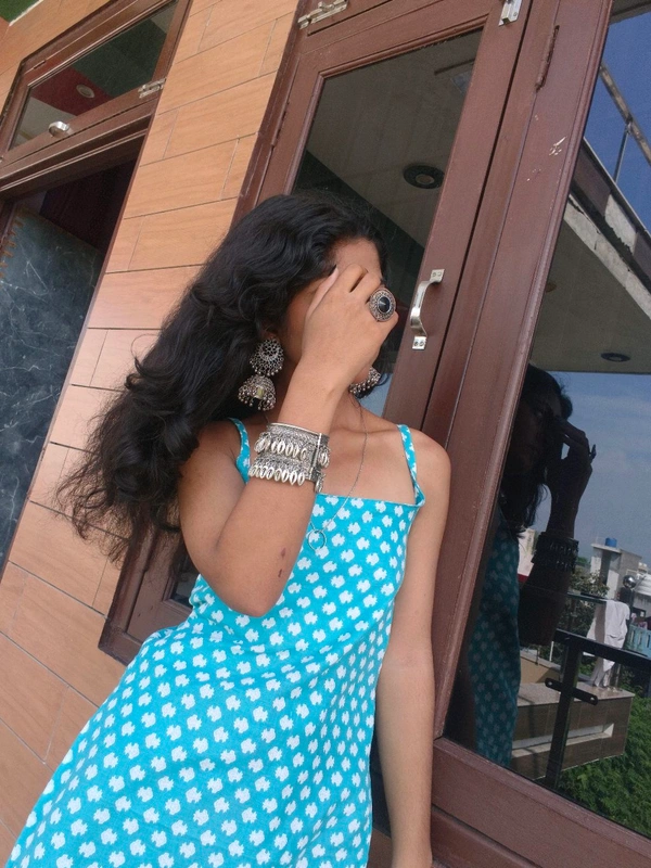 Step into elegance with this refreshing aqua blue cotton kurti featuring a chic all-over white cloud-inspired print. The highlight of this outfit is its stylish lace-up tie-back design, which adds a trendy twist to traditional wear. Lightweight and breathable, this kurti blends comfort with fashion, making it perfect for both casual outings and festive gatherings. Pair it with silver oxidized jewellery for a complete boho-chic look.