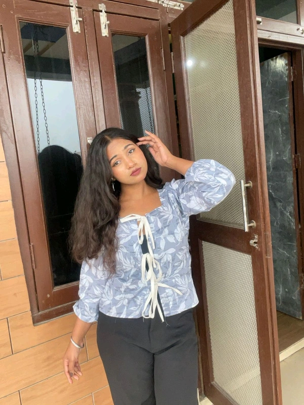Grey Leafy Tie-Up Peasant Top – Breezy & Bold