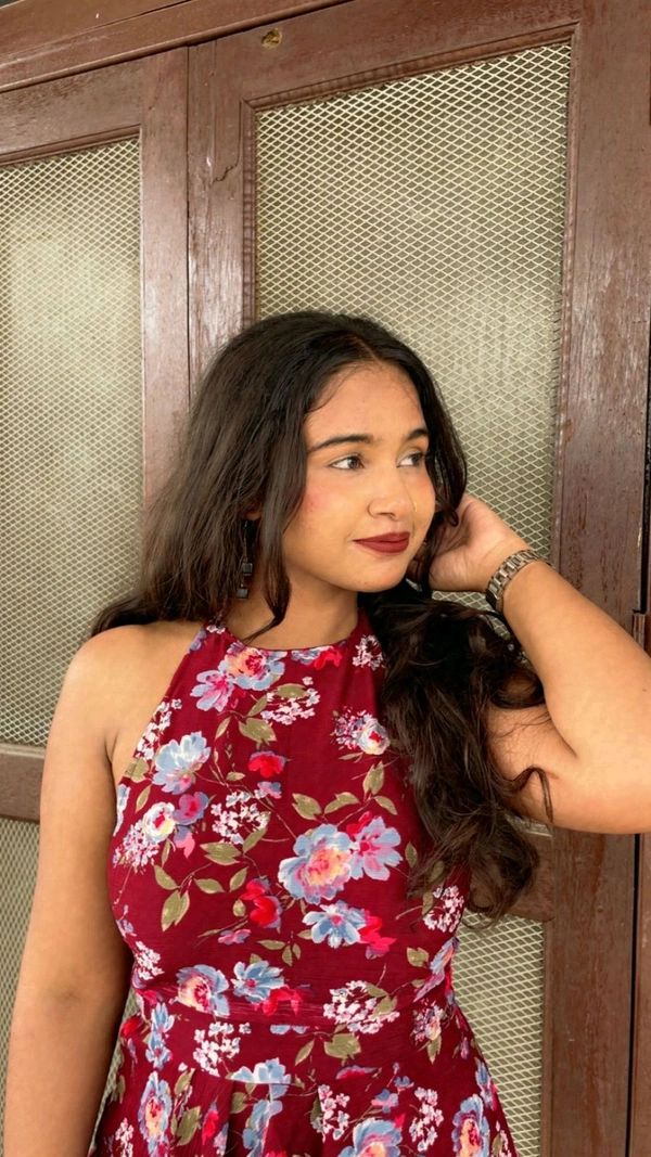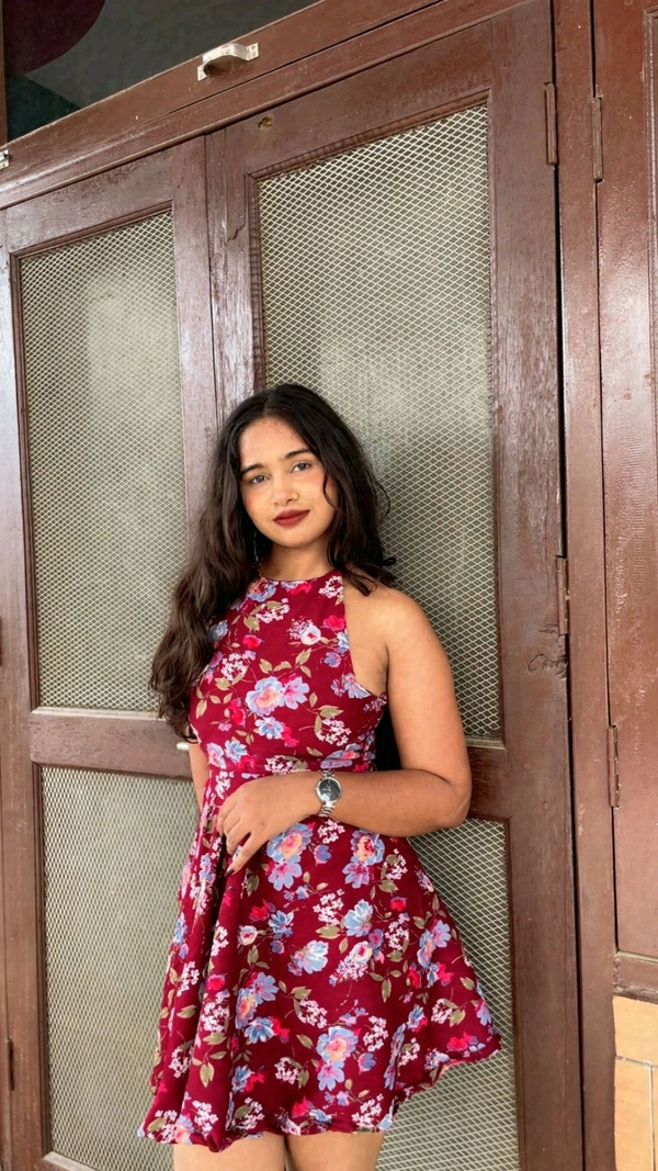 Make a bold and elegant statement with this stunning Maroon Halter Neck Short Dress. Featuring a stylish tie-up detail at the back of the neck, this dress adds a playful yet chic touch to your wardrobe. The halter neckline beautifully frames the shoulders and collarbone, while the rich maroon hue brings depth and sophistication to your look. Perfect for evening parties, date nights, or festive occasions, this dress combines comfort with contemporary style. Pair it with heels and statement earrings for a complete look.