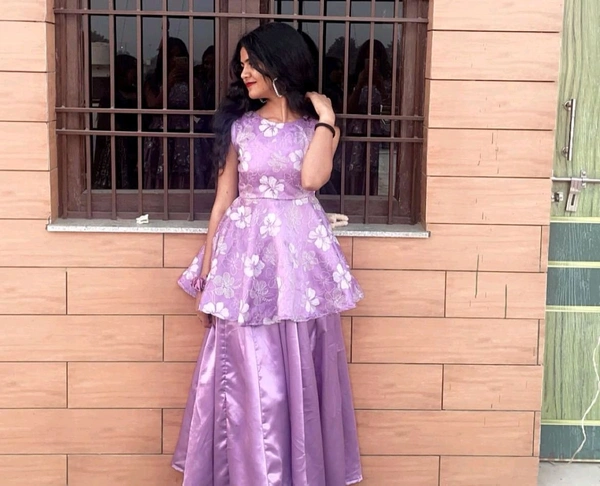 Product Name: Lavender Peplum Kurti & Satin Skirt Set