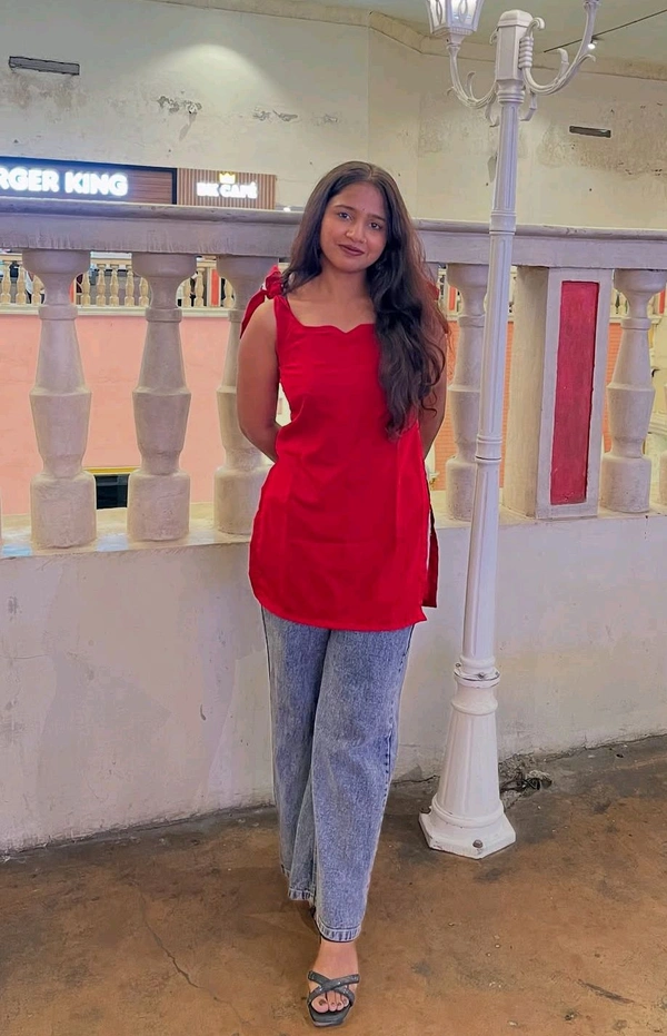 Made from breathable and comfortable fabric, this kurti ensures that you stay cool and confident all day long. Its bold red shade not only enhances your glow but also exudes an aura of energy and confidence. The unique knot design adds a playful yet sophisticated touch, making it a versatile piece that complements any occasion.