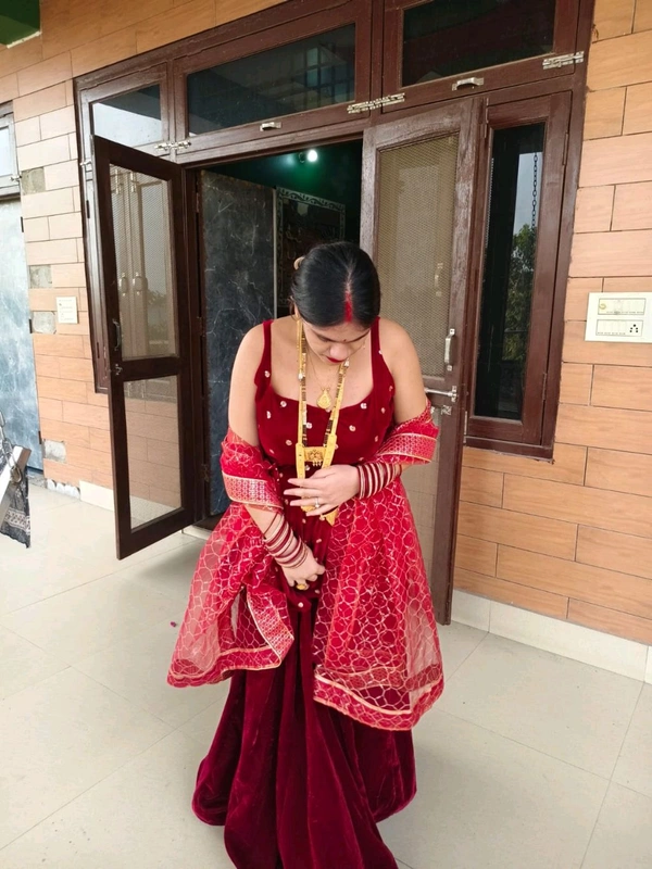 Perfect for weddings, Karwachauth, or winter festivities — this outfit brings warmth, richness, and unmatched sophistication.